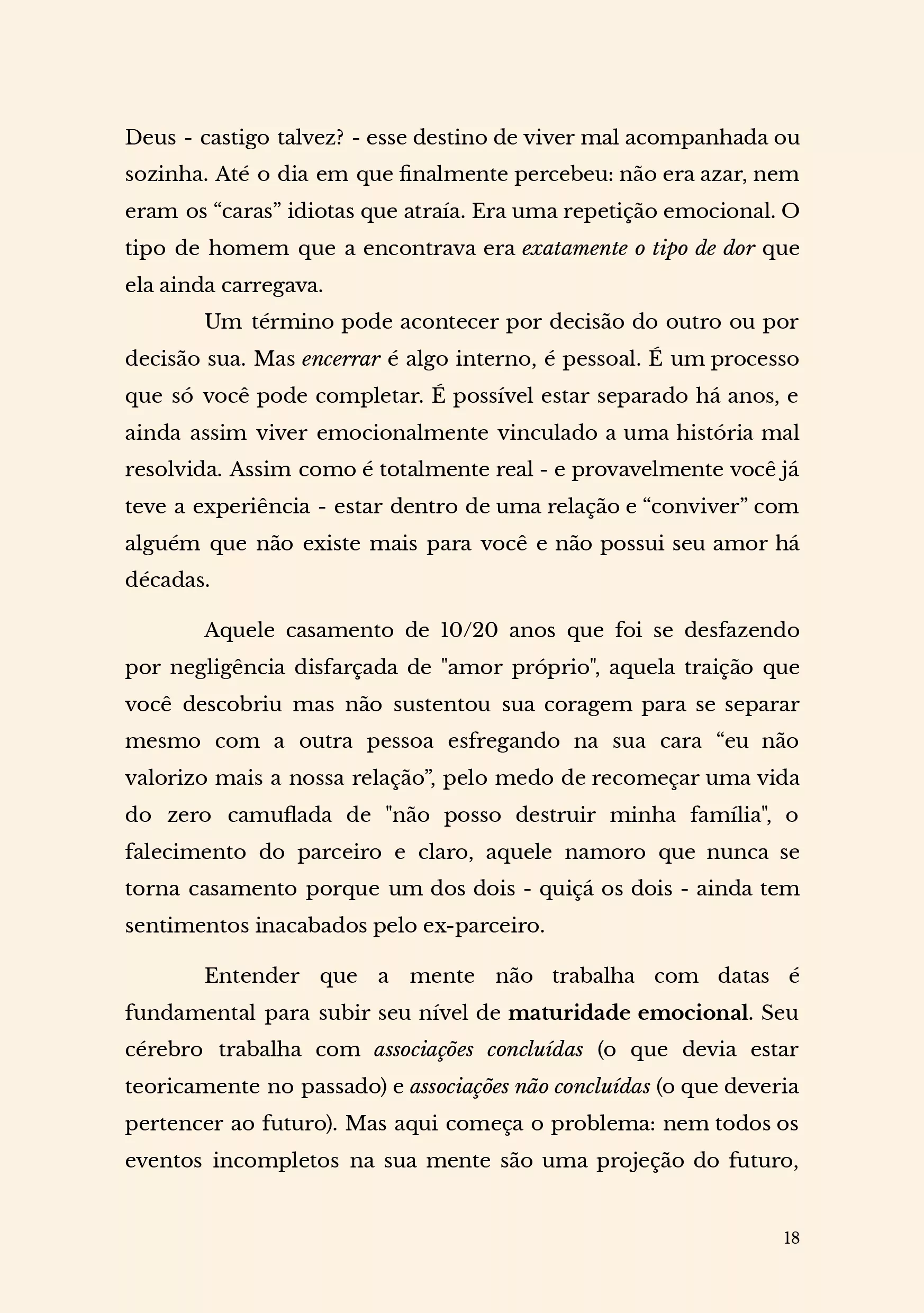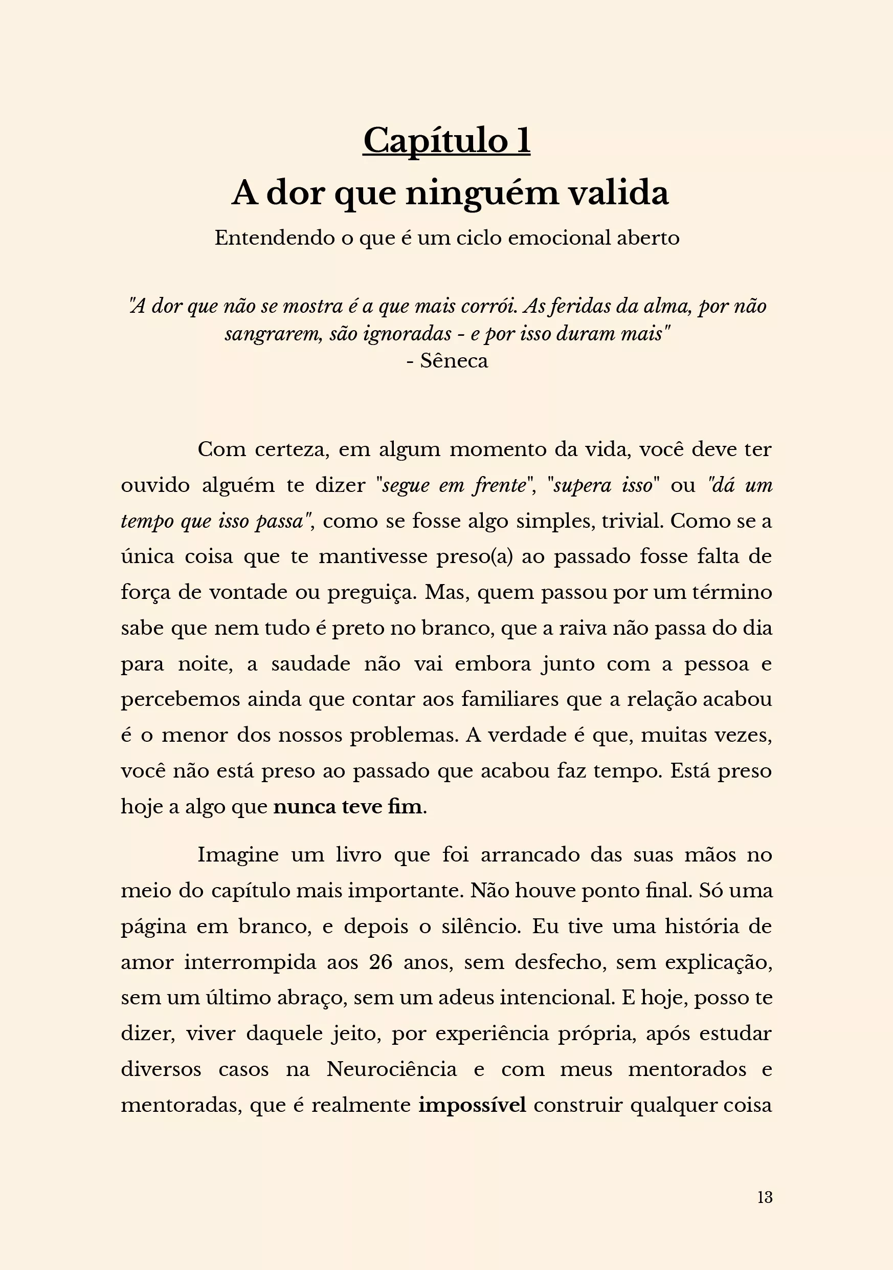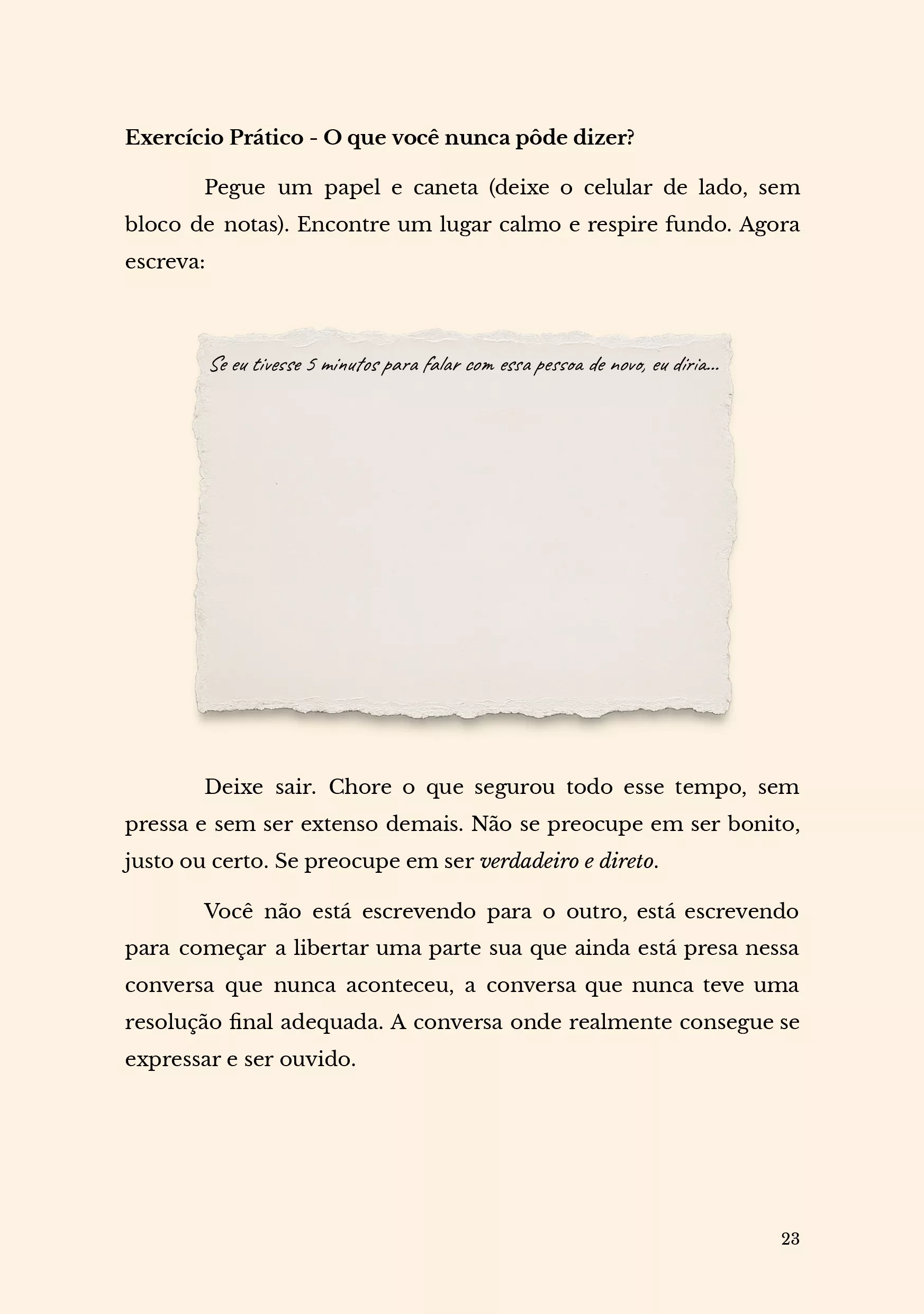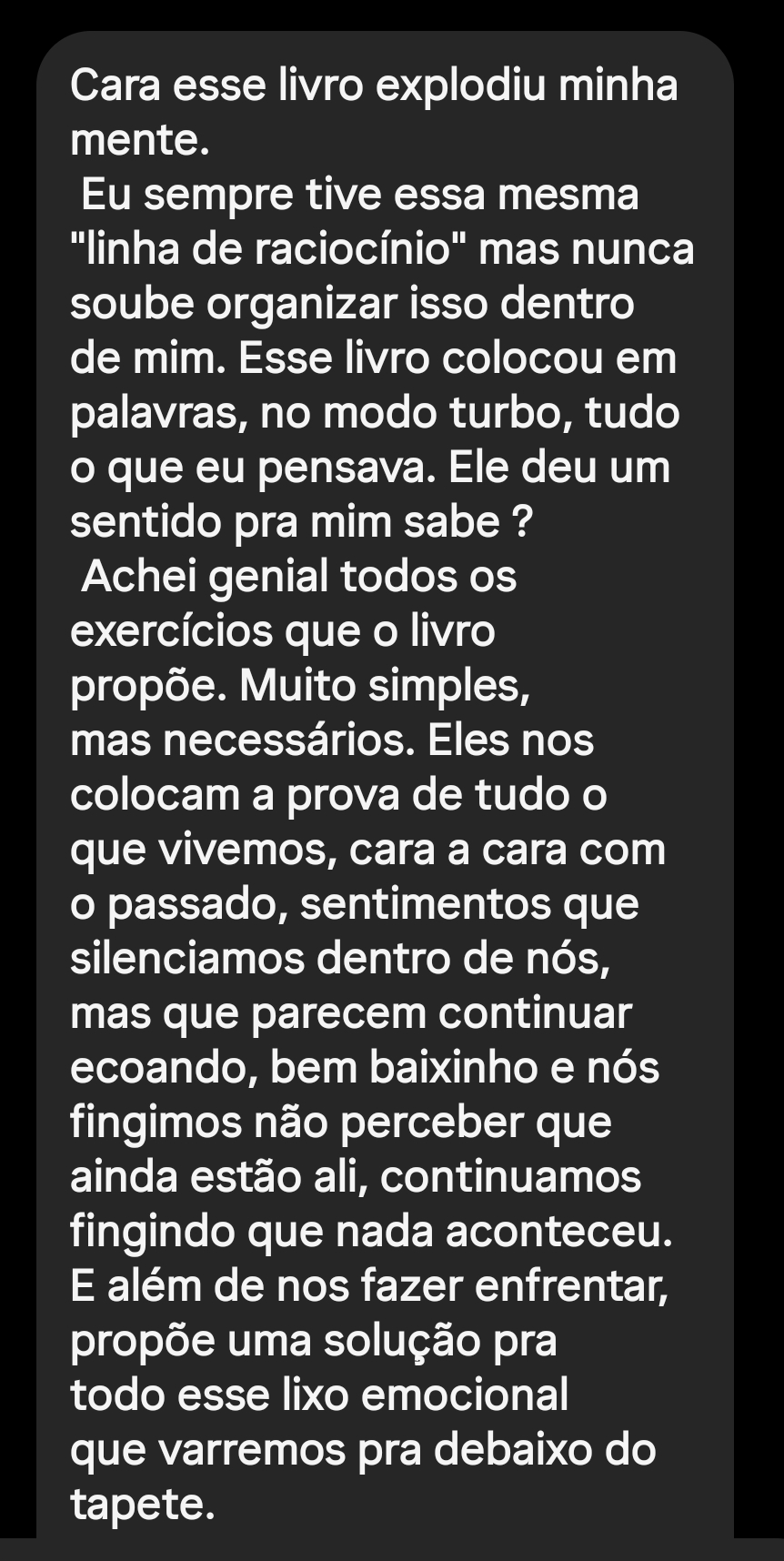 - Exercícios práticos de escrita emocional guiada ao longo de uma leitura ativa e reflexiva.