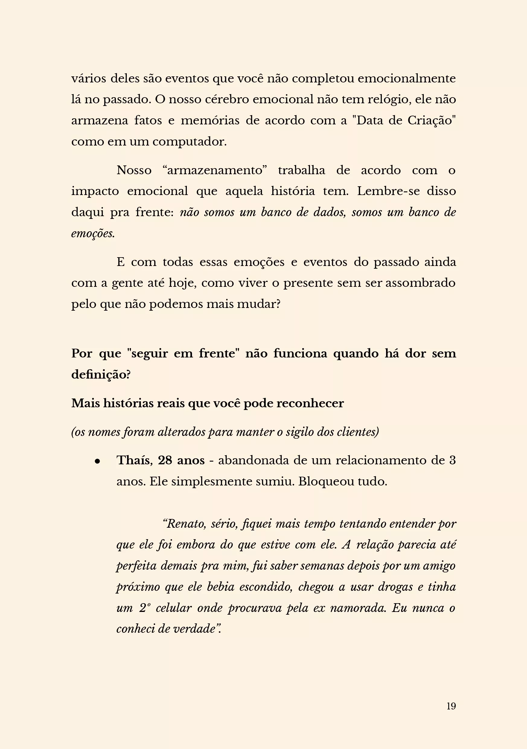 - Um ritual de encerramento emocional que vai começar a mudar sua história e sua percepção sobre si mesmo.